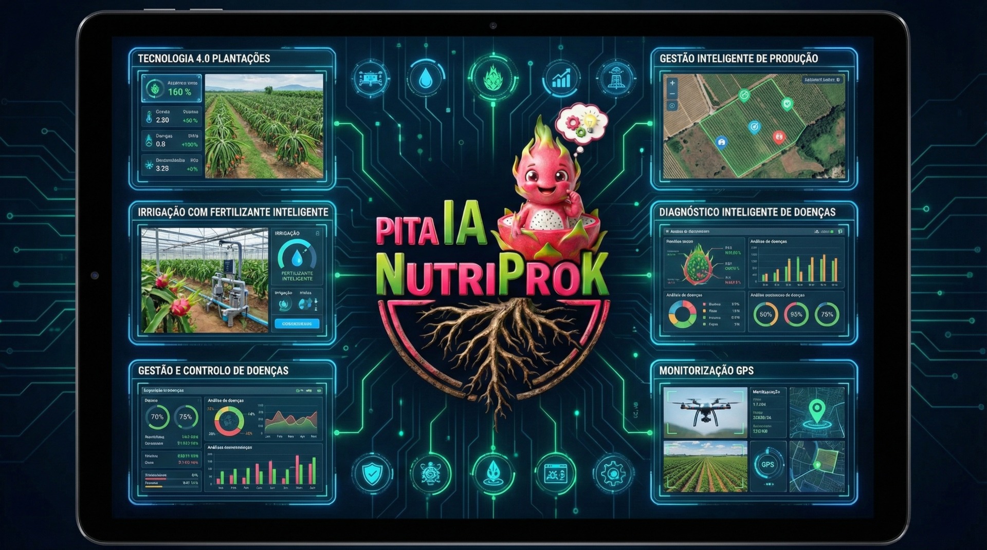 A nossa ferramenta revolucionária, PitaIA NutriProk, que condensa estudos, experiência e trabalho em campo num poderoso sistema de gestão de pomares de pitaya.